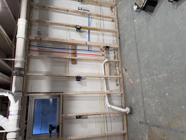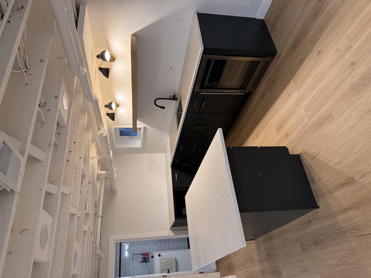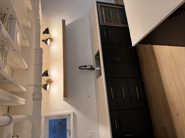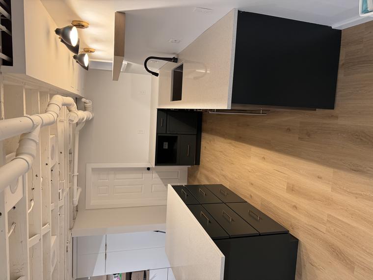 Working off a families needs and vision. We helped to make their existing basement more useful. Finished walls, updated electrical and vinyl plank flooring. Mixing a clean modern look with a open studio feel. We added a full bathroom and kitchen, open ceiling painted flat white to remove the feel of being in a basement.